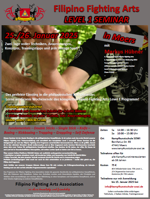 Anmeldung Filipino Fighting Arts Seminar 25. und 26.1. 2025